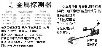 型号TC-90型TC-91型TM89型TM88型探测深度1.5米2.0米2.5米3.5米