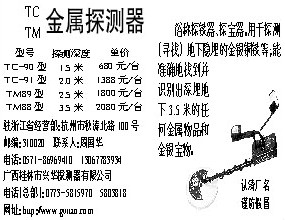 型号TC-90型TC-91型TM89型TM88型探测深度1.5米2.0米2.5米3.5米单价680元/台1388元/台1800元/台2080元/台