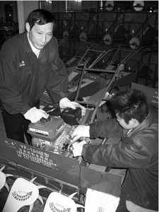 江西新余市亿丰农业机械有限公司董事长、总经理敖小平正在调试他的新发明专利产品——自走式稻麦割晒机。30年前,15岁的他初中还没有毕业,就在父亲的铁匠铺里帮忙。在敲敲打打、修理农机具的过程中,他走上农机具发明之路,已有两项农机产品获国家发明专利。昔日的“泥腿子”,如今已拥有近千万元资产。