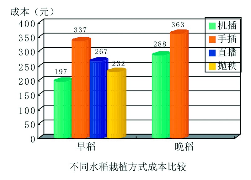 机械插秧有序栽植,薄水管理,宽行浅栽,便于通风,病虫害发生率减少,用药次数平均可减少2~3次。与其他栽植方式相比,每亩可节约肥、药成本30~50元。