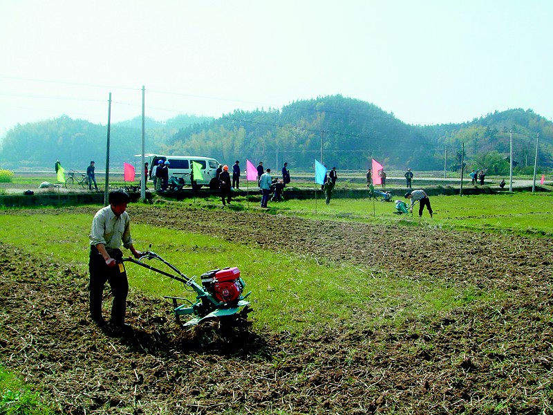 图为龙游县在溪口镇下徐村举行小型田园耕作机操作现场演示会。