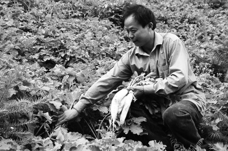 磐安县仁川镇洋坑村羊昌财今年种的50多亩高山萝卜喜获丰收,销路很好。 孔德宾 卢红英 摄
