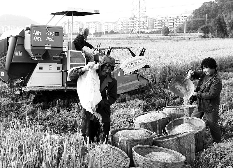 惠农政策激发农民种粮积极性。省优秀种粮大户、宁波江北慈城金桂叶,今年400亩晚稻喜获丰收,平均亩产450公斤。 水贵仙 摄