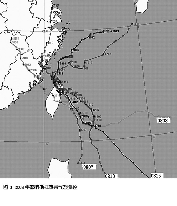 2008年影响浙江热带气旋路径