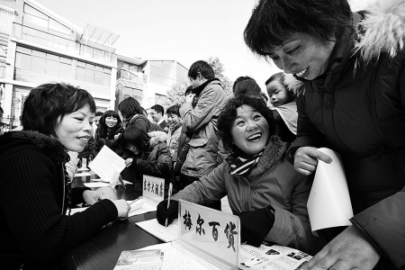 衢州市府山街道组织的首场新春招聘会近日在就业超市举办。这场招聘会,为400多名农民工、大学毕业生等提供了管理员、营业员、保安员等100多个就业岗位。邵全海 摄