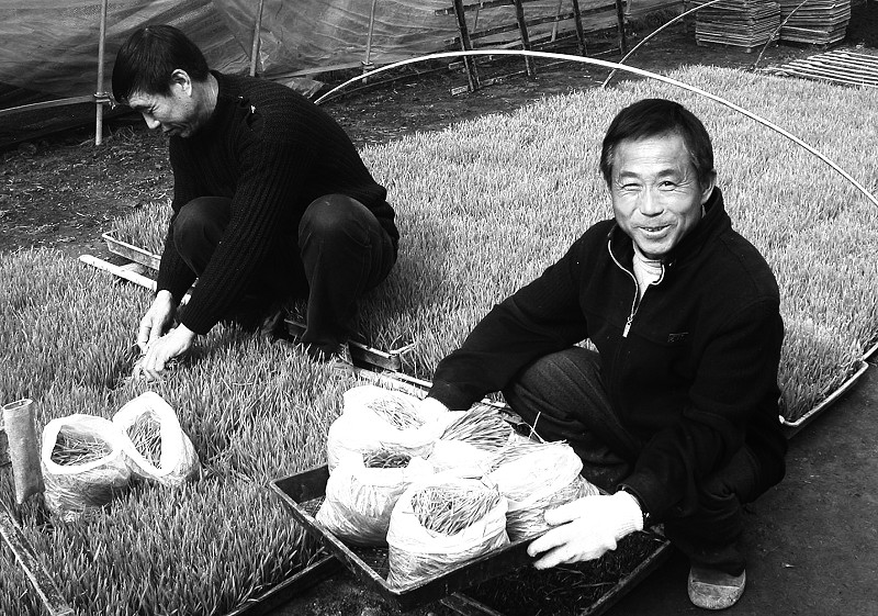 3月9日,在温岭市中苑花木基地,两名员工正在收割小麦草,以每公斤26元售给已订购的市民。种小麦不收粮,割麦草论斤卖,小麦草的汁液,含有丰富的营养物质,有增强体质、降低血脂的功效,小麦草因此成为眼下的健康绿色食品,倍受都市居民的青睐。 林绍禹 摄