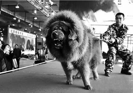 3月20日,在山东济南举行的2009中国藏獒展览会济南站巡回展上,这只标价3000万元的红獒“连胜”特别引人注目。
