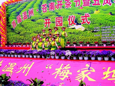 时 间:2009年3月5日 地 点:苍南县五凤乡八亩后主办单位:苍南县人民政府 温州市农业局 温州市风景旅游管理局承办单位:苍南县五凤乡人民政府 苍南县农业局 苍南县风景旅游管理局协办单位:苍南县五凤乡八亩后村 苍南绿剑茶业有限公司