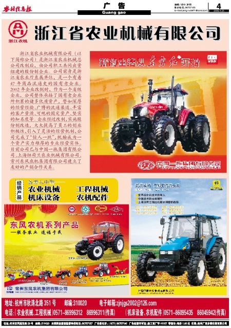 浙江省农业机械有限公司(以下简称公司)是浙江省农业机械总公司改制后,由公司职工共同出资组建的股份制企业。公司前身是浙江省农业厅直属单位,是一个有着47年商品流通史的国有老企业。2002年企业改制时,作为一个省级企业,公司整体承接了国有老企业所积累的诸多优质资产,譬如深厚的经营经验、广博的流通渠道、丰富的客户资源、可观的固定资产、坚实的知名度等。企业经过改制,实施股份制改造,大大提高了员工的创业积极性,引入了灵活的经营机制,公司完成了“惊人一跃”,脱胎成为一个资产实力雄厚的专业经营实体。目前公司已与中国一拖集团有限公司、上海纽荷兰农业机械有限公司、常州东风农机集团有限公司建立了友好的产销合作关系。
