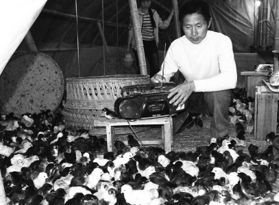 玉环天峰农业有限公司养殖场从今年2月下旬开始,每天在5个喂食时段,为养殖场里的小鸡播放半小时的音乐。据养殖场负责人王妙夫介绍,在音乐的刺激下,小鸡的胆子变大了,食欲增进了不少,长速也加快了。听音乐长大的小鸡,鸡肉和所下的鸡蛋口感都更好了。吴达夫 摄