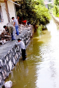 诸暨市牌头镇的船底翻溪坑,以前两旁和溪涧中长年都是成堆的生活垃圾,发黑的溪水散发出阵阵臭气。自4月份以来,牌头镇把河道卫生整治作为环境治理的关键点,落实专项资金,清污泥、除垃圾,砌石坎、盖面板,“龙须沟”翻了底,臭溪坑改变了“脏、乱、差”的面貌。