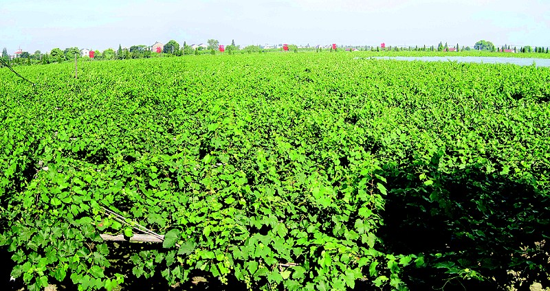一望无垠葡萄园,疑似海洋绿浪翻。颗颗都是增收果,果农喜从心中来。
