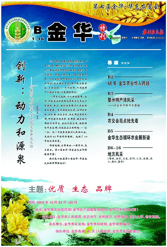 第七届金华·华东农交会即将隆重开幕。金华·华东农交会上的展板、展品,都诉说着婺州人民的勤劳和智慧。