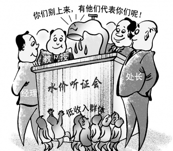 日前召开的济南市水价听证会遭到质疑,24名听证代表中不乏处长、工程师、教授等中高收入阶层人士,而对价格调整最为敏感的下岗职工、低保户等低收入群体无一代表参会。本次听证会的结果是“八成听证代表同意涨价”。
