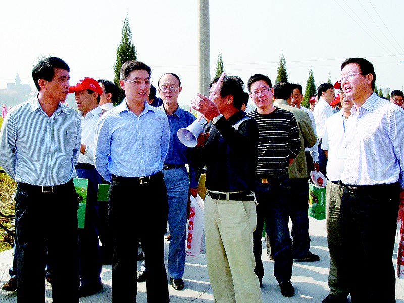 绍兴市副市长冯建荣(前排左二)、市农业局局长张阿东(前排左一)调研粮食生产。