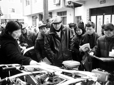 日前,在桐庐县瑶琳镇文体中心广场举行的“为农服务月”活动启动仪式现场,前来参观的农民挤满了展台,不少农民当场与农机厂家签订了购机意向书,打算在新的一年里好好干上一番。 方玉亭 摄