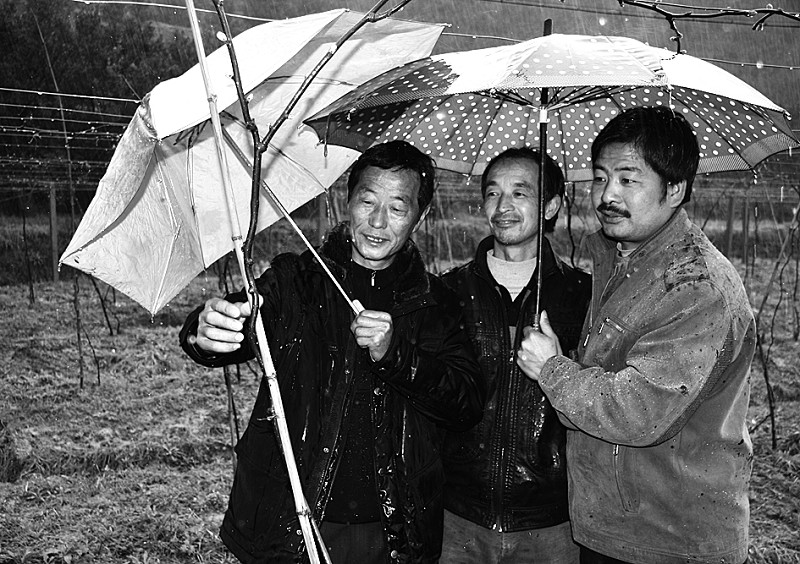 今年入春以来,衢州市柯城区石梁镇抓住雨水充足的有利时机,抓紧培训农民种植红星猕猴桃、雷竹等经济林木,开展雨季造林活动。图为技术人员正冒雨在基地培训农民。吴铁鸣 严国富 摄