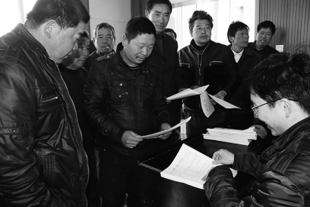 温岭市各镇(街道)把中央、省、市、镇四级的粮食生产扶持政策制成明白卡发给种粮大户,使农民种粮积极性空前高涨,今年该市已落实早稻面积5万多亩。图为3月12日,温岭市箬横镇岁坊村的种粮大户们在领取种粮政策明白卡。
