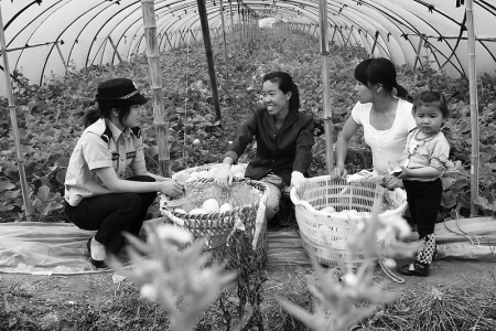 瓜熟季节,台州市黄岩区北洋镇派出所民警走村串户,跑田头、入大棚,和群众拉家常,了解治安动态,预防可能发生的治安案件,维护辖区社会稳定。