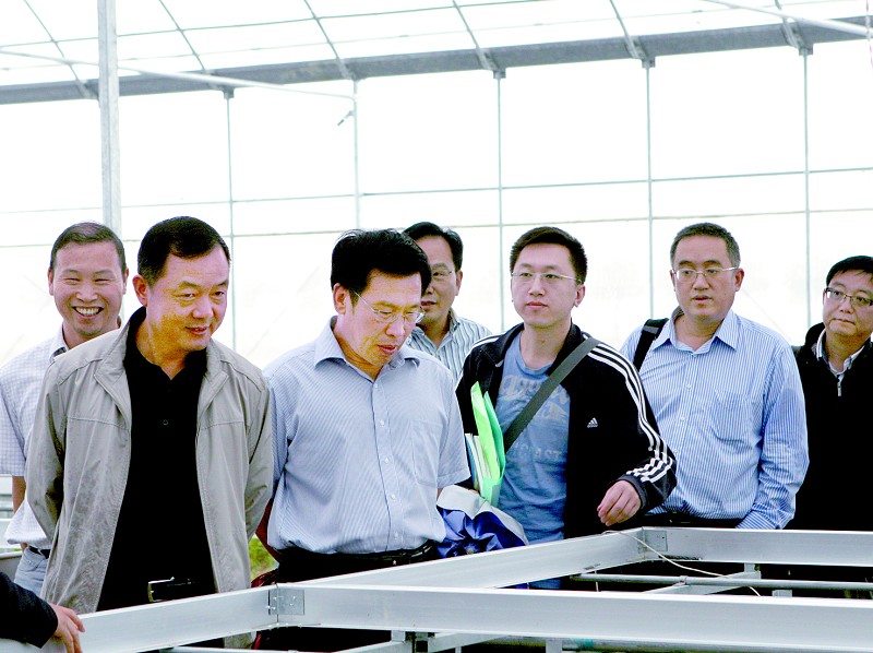 今年9月,省农业厅副厅长冯一鹤(前排左一)陪同农业部中国绿色食品发展中心主任王运浩(前排左二)调研我省“三品”发展情况。
