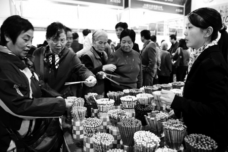 森博会上,众多参观者选购台湾阿里山竹筷。 张建成 摄