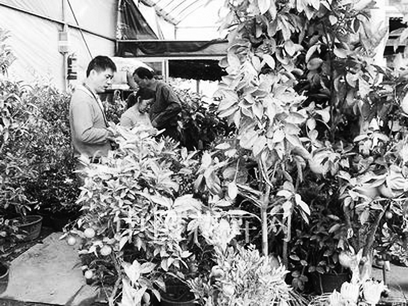 在近日的杭州花卉市场上,结满果实的砂糖橘、佛手、柠檬等盆栽果树受到青睐。一盆长着三四个果实的佛手,批发价在30元左右;一盆一米多高的砂糖橘,挂果几十个,批发价为五六十元;一盆结着6个果实的柠檬,批发价为50元。