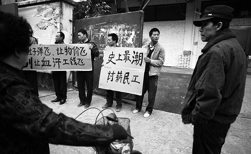 贺岁电影大片《让子弹飞》在全国火爆放映的同时,连民工讨薪都套用了片名。9日上午10时许,广州市海珠区云桂大街嘉宏阁前面,来自湖南和四川的十余位民工号称“史上最潮讨薪民工”,他们举着“让子弹飞,让物价飞,别让血汗工钱飞”的牌子来声讨老赖,以此引起政府和媒体注意,希望能够如愿讨回工钱回家过年。 (摘自《长江商报》 2011年1月11日)