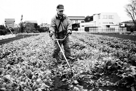 3月22日,日本茨城县,一位农民用割草机剪掉菠菜。日本中央政府和地方政府说,全国9个县自来水中放射性物质含量超标。福岛县产的绿菜花、菠菜、卷心菜等11种蔬菜,以及茨城县产的原料奶和芹菜已检测出放射性碘和铯超标。日本政府宣布,暂停从福岛县、茨城县、枥本县和群马县运出部分种类食品,包括菠菜和牛奶。 (据新华网 2011年3月23日)