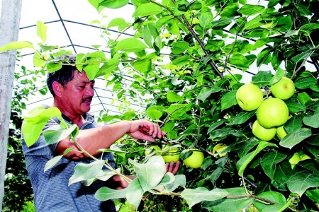 “利用大棚种梨,前期一般密植,提高产量,后期再把过密的植苗移栽,这样有助于高产。”陈红星介绍,搭建大棚种植水果,主要有以下好处:雨水少了,糖分提高了,而且大棚里病虫害少,喷施农药比露天水果次数减少,最重要的是还能提早上市时间,提高效益和食品安全。但特别要注意的是,大棚种植水果关键要选好品种。