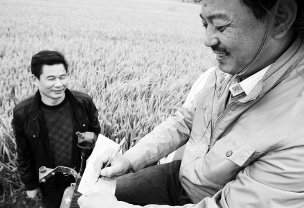 在省农机局联合中石化浙江分公司下发1.1万吨秋收冬种专项柴油指标后,我省各地农机部门积极做好农用柴油的分配、供应和管理工作,农机工作人员把一张张柴油供应券送到机收现场,有效解决秋收冬种急需柴油的难题。图为诸暨市江藻镇农机手王伯华在田头喜领柴油供应券。 郭斌 杨赟 摄