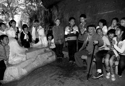 衢州市柯城区石室乡充分利用地处国家级非物质文化遗产——烂柯山的地理优势,在节假日开展农村未成年人“春泥计划”活动。图为11月29日下午,非物质文化遗产传承人徐臣榜在烂柯山下给石室三村的小学生介绍樵夫王质遇仙的传说。