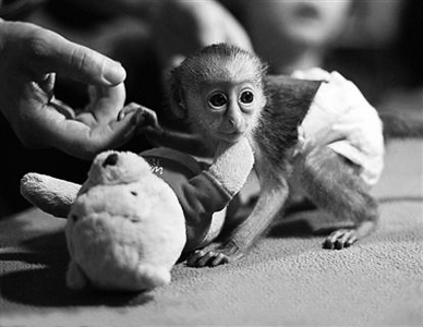 德国马德堡动物园的一只加纳长尾猴宝宝因患先天性心脏病被高龄母亲抛弃,生命堪忧。幸亏有动物园的工作人员悉心照料,充当“奶妈”为其喂奶,小猴崽现在健康快乐,还穿着特制纸尿裤。