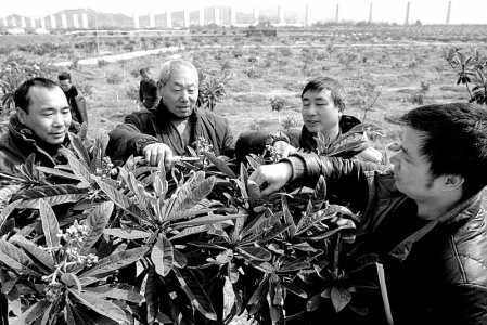 2月20日,义乌市义亭镇农技员在王阡一村为果农做枇杷疏果示范。张建成 摄