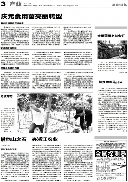 7月11日,央视记者在台州市椒江区秀珍菇种植大户吴秀龙的山洞种植场里拍摄食用菌安全生产的镜头。吴秀龙采用温岭农民施金驰发明的食用菌杀虫灯,物理捕杀菌菇蚊蝇,不仅增产,且无公害。