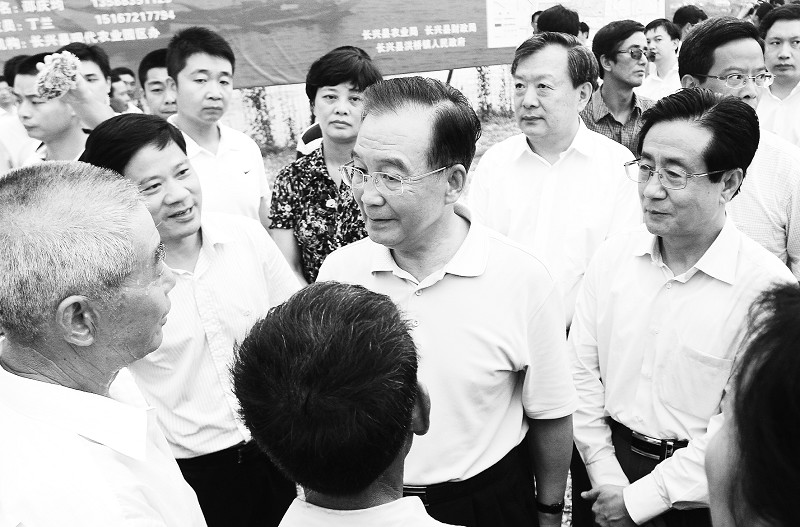 8月14日下午,中共中央政治局常委、国务院总理温家宝冒着酷暑来到长兴县洪桥镇,实地考察了位于洪桥镇的省级现代渔业示范区。省委书记、省人大常委会主任赵洪祝,省委副书记、省长夏宝龙等省领导陪同考察。