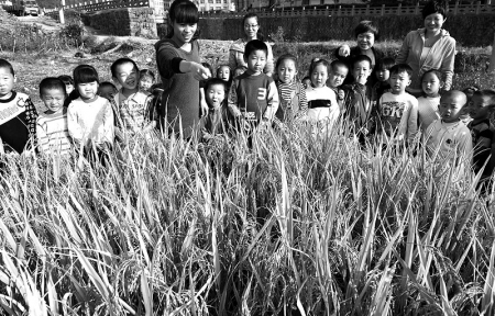 为迎接 10月16日第32个“世界粮食日”的到来,临安市岛石镇小学和岛石镇中心幼儿园开展“珍惜粮食,从我做起”主题活动,增强孩子们爱惜粮食、节约粮食的意识。图为幼儿园小朋友正和老师一起学习认识稻穗。
