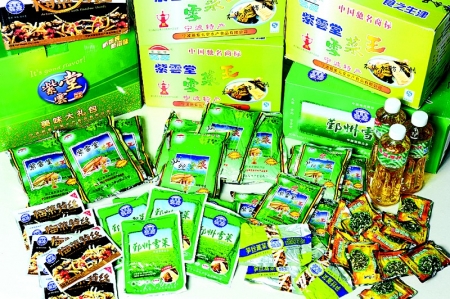 宁波新紫云堂水产食品有限公司是一家专业从事雪菜种植、加工及研发于一体的宁波市农业龙头企业和浙江省农产品加工示范企业。该公司于1996年成立了鄞州第一个农民专业合作社——鄞县大嵩蔬菜专业生产合作社,实行雪菜订单生产与保护价收购。“紫云堂”商标被认定为中国驰名商标。近年来,该公司与“康师傅”合作,专业生产小包装产品,自主研发的海带蒿菜、笋丝蒿菜、青豆蒿菜、海苔小包装等系列即食产品,广受消费者欢迎。