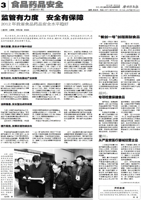 食品药品安全事关百姓民生,是社会关注的焦点。为此,本报与省食品药品监督管理局合作,从今天起,推出“食品药品安全”专版,每周出版一期,以飨读者。