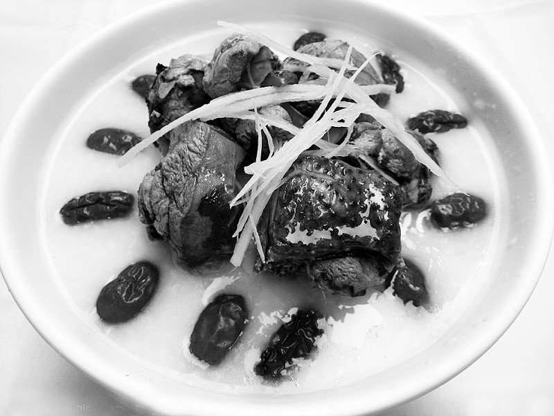 做法:将乌鸡宰杀去内脏洗净;桂圆去壳;干香菇用温水泡软,去蒂洗净;青菜心洗净。把乌鸡、桂圆、大枣、干香菇放入煲中,掺入清水,放入姜(拍破)、葱(挽结)、胡椒面、料酒,小火煲至乌鸡熟透时,拣去姜葱不用,放入青菜心,调入精盐、鸡精粉,煲至青菜心熟即可。