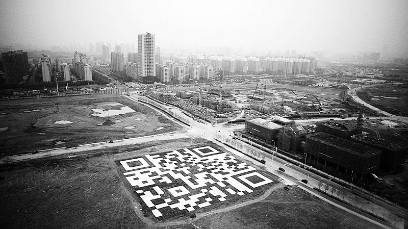 近日,安徽合肥四里河路附近出现一大块“二维码”。这个巨型“二维码”由土地、草坪、石子组成,呈一个正方形,面积达6400平方米,是我国目前已知的最大的二维码草坪。据悉,这个“二维码”在数百米高空仍能“扫”出音乐、文字,甚至视频。 (摘自《江淮晨报》 周勇/摄 2013年5月16日)