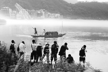 盛夏时节,每逢清晨,建德市新安江畔的下涯湿地奇雾缭绕,宛如仙境。这也是“渔夫模特”的生意旺季。近日,200多名来自上海、江苏、杭州、温州等地的摄影爱好者在湿地江岸边架起“长枪短炮”,不停地按动快门,拍下山水如画的美丽景致。