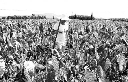7月29日,武义县的气温高达39℃,泉溪镇张宅村农户种植的大片毛芋,叶子被烤焦。据了解,除了毛芋,当地农民种植的甜玉米、豆角、茄子等作物也遭受高温干旱影响,有些作物经济损失在 50%以上。张建成 摄