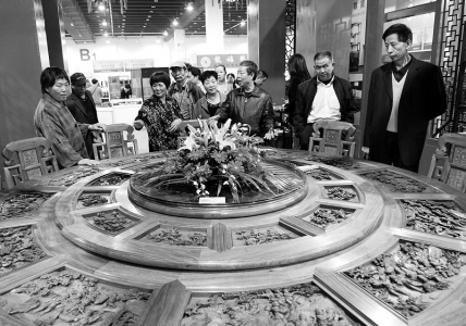 11月1日,第六届中国义乌国际森林产品博览会在义乌国际博览中心开幕。本次展会吸引了国内外1313家企业参展,参展产品涵盖家具、木结构木建材、木竹工艺品、木竹日用品、森林食品、茶叶、花卉园艺和林业装备八大类,吃的、用的、玩的一应俱全。上图为中外客商在森博会上采购竹制工艺品,右图为采购商在参观木制家具。