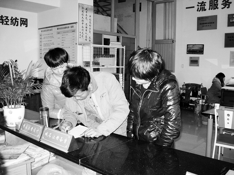 建刚信息网的工作人员指导徐银海填写会员申请表。
