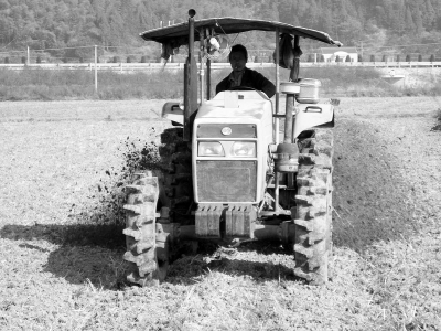 哒,哒……随着拖拉机的牵引,泥土在高速旋转的两个刀片轮作用下飞散,随即呈现出一条上宽约50厘米、下宽约25厘米、深约40厘米的排水沟。近日,台州市椒江区章安街道世外桃园家庭农场正在使用开沟机挖掘排水沟。农场负责人王新明说,这台开沟机一天可以挖20亩地的排水沟,同样工作量人工需要20个工人起早摸黑挖一整天。 陈道平 摄