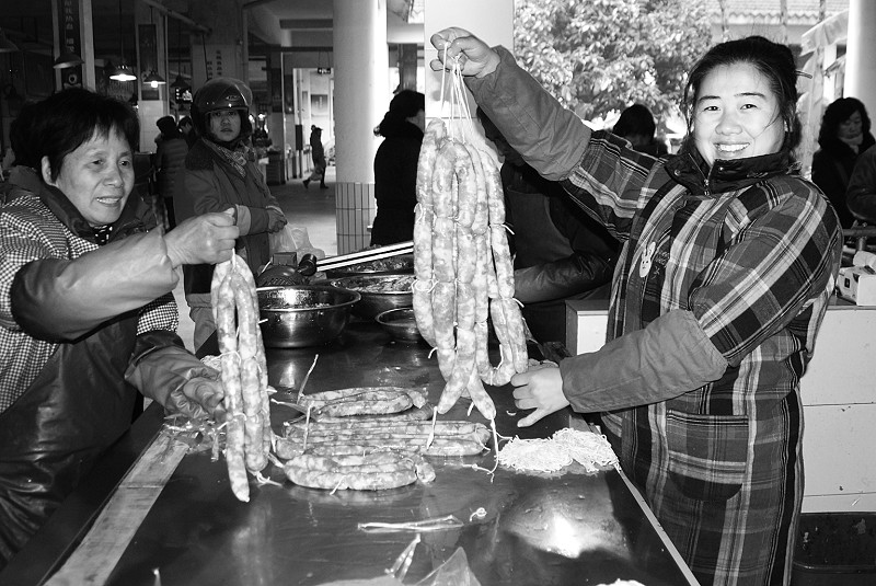 近日,在建德市新安江农贸市场里,前来灌制香肠的市民络绎不绝。据一位摊主说,这些天,从早到晚,每天至少要加工灌制香肠500多公斤。