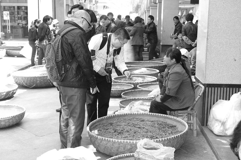 来自全国各地的客商在新昌中国茶市选购新茶。