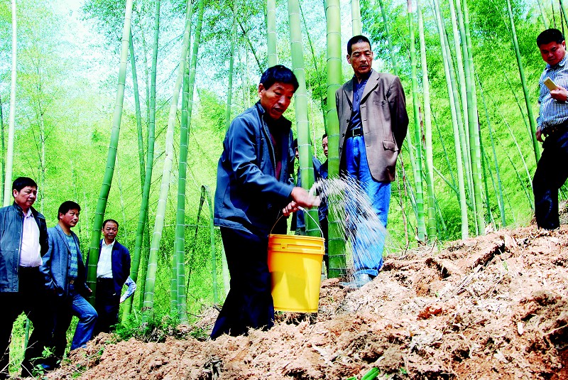 眼下正是毛竹笋竹两用林施肥的关键时期。4月29日,建德市林业局毛竹首席专家夏根清来到大同镇竹源村葛凉源山上,对沟施、穴施、蔸施及用肥量等关键科学施肥技术进行现场讲解与指导,为竹笋两用林高效经营打下基础。 宁文武 摄