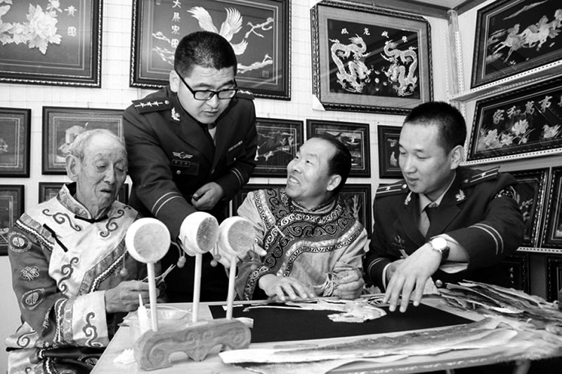 近日,黑龙江公安边防总队佳木斯支队街津口边防派出所官兵来到街津口赫哲民族乡村民家中,向村民了解赫哲族文化,并学习制作鱼皮工艺品。黑龙江省同江市街津口赫哲民族乡是全国人口最少民族之一赫哲族的主要聚集地,赫哲族的“鱼皮文化”在全世界独一无二,被列入第一批国家级非物质文化遗产名录。