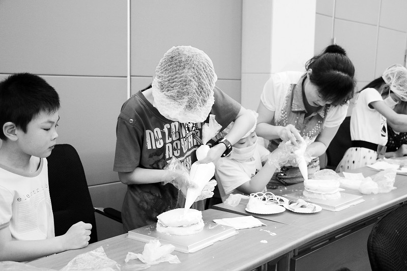 日前,嘉兴市经济开发区食安办组织开展了食品安全宣传周——食品安全体验行活动,来自该区21个家庭的小朋友和家长共50余人参加了活动。图为小朋友和家长在美丽家食品有限公司工作人员的带领下,亲手制作蛋糕,体验安全食品生产过程。